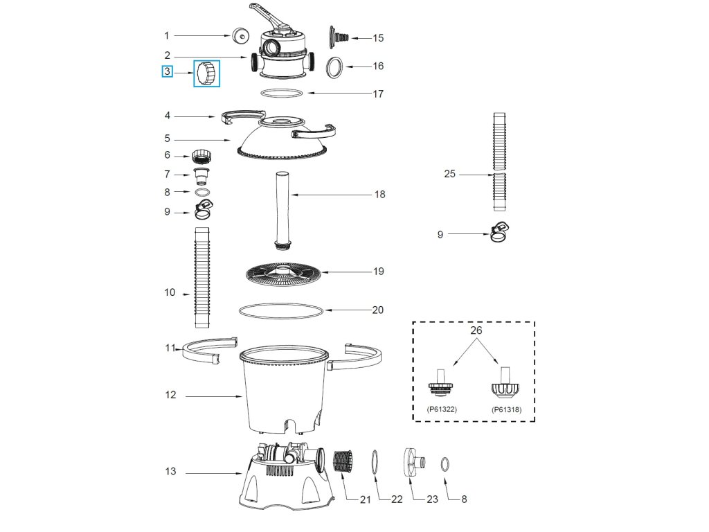 Náhradní díl Bestway® Kryt odtoku (tyrkysová) pro pískovou filtrační jednotku Flowclear™