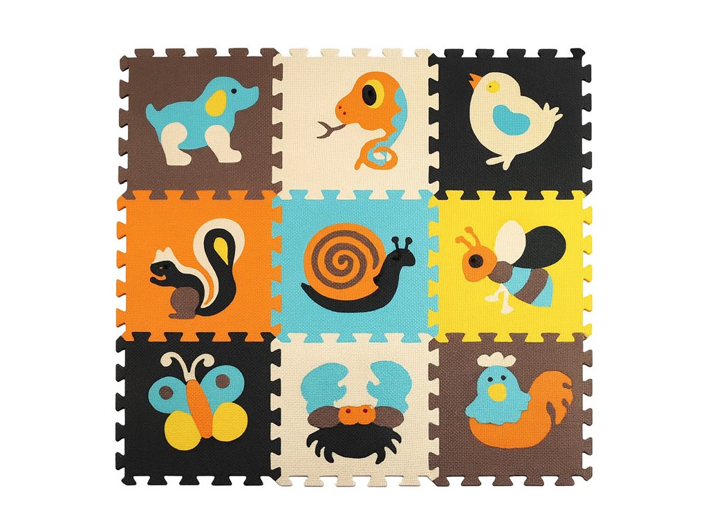 Pěnové puzzle 9ks 30 x 30 x 1 cm - zvířátka barevné