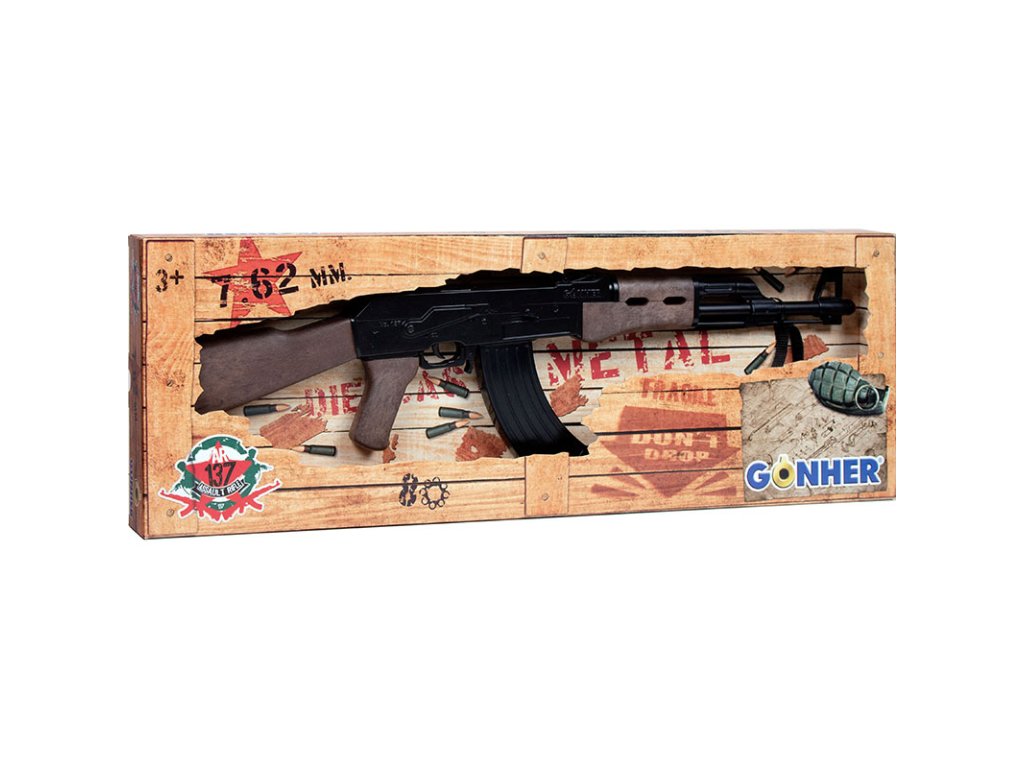 Kovový samopal značky Gonher je robustní hračka, určená pro realistické hry na vojáky, Lupiče a policisty. Vyniká pevnou konstrukcí a spolehlivým mechanismem na kapslíky pro autentický zvukový efekt střelby.Vyrobeno ve Španělsku, kde je kladen důraz na tradiční řemeslnou výrobu. Hračka využívá standardní 8ranné kruhové kapslíky (nejsou součástí balení), které po stisku spouště vydávají zvukový efekt.Doplňkové parametry
