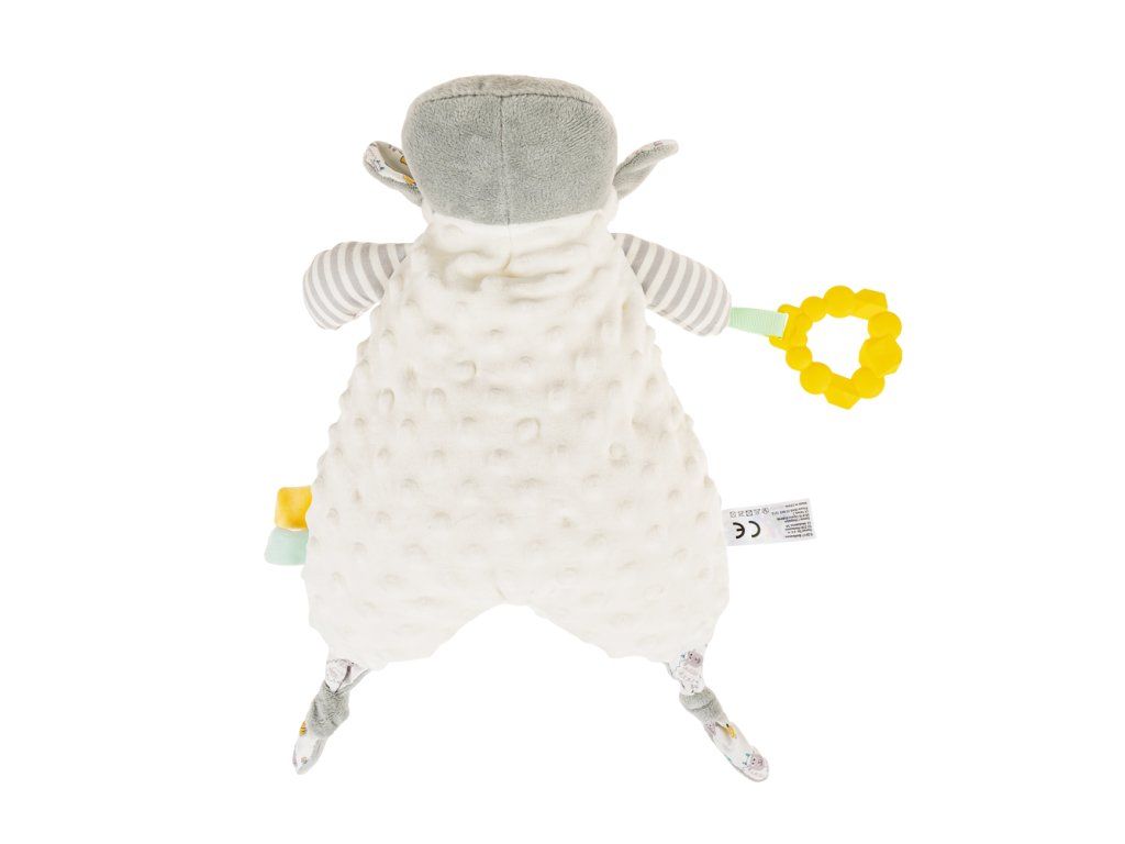 Toto plyšové zvířátko kombinuje výhody tradiční plyšové hračky s výhodami hračky a stimuluje kognitivní vývoj dětí. To vše díky různorodým materiálům, ze kterých je ovečka vyrobena, včetně hladkých tlapek, plyšových zauzlovaných nohou, těla připomínajícího „míč“ a šustivých prvků. Jedna z oveččích tlapek je navíc ozdobena kousátkem, které se jistě bude hodit každému batoleti, kterému se prořezávají zoubky. Tento produkt je určen pro děti od narození. Vlastnosti produktu: - různé textury materiálů; - látkové visačky; - měkké kousátko; - šustivé visačky; - věk: 0m+.