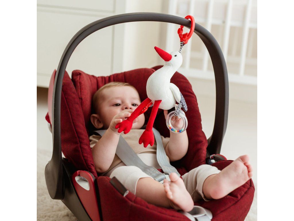 Perfektní a praktický dárek pro nastávající rodiče nebo první dárek pro novorozené miminko! Tato stolička je vyrobena z materiálů v kontrastních barvách a texturách, které stimulují smysly vašeho dítěte a podporují jeho smyslové objevování. Čápí křídla jsou ozdobena dvěma dalšími hračkami: kousátkem s výstupky a chrastícím kroužkem plným barevných korálků. Praktická rukojeť na přívěsku umožňuje snadné připevnění kamkoli. Tento produkt je určen pro děti od narození. Vlastnosti produktu: - různé materiály; - kousátko; - chrastítko; - praktický přívěsek k připevnění na libovolné místo; - věk: 0m+.