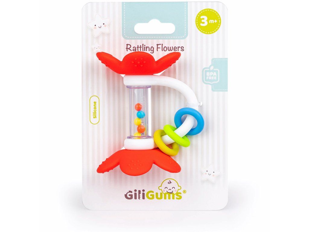 Toto rozkošné chrastítko, zdobené silikonovými kvítky z obou stran, je skvělým doplňkem každé dětské hry! Nabízí zábavnou aktivitu a díky praktickým výstupkům zdobícím okvětní lístky také přinese úlevu bolavým dásním vašeho dítěte. Hračka obsahuje barevné korálky, které při zatřesení vydávají příjemný zvuk. Praktická rukojeť s pohyblivými kroužky usnadňuje malým ručičkám uchopení hračky. Tento produkt je určen pro děti od 3 měsíců. Vlastnosti produktu: - různé textury; - chrastící korálky; - pohyblivé části; - pohodlné uchopení; - věk: 3m+.