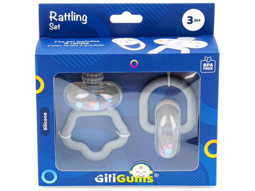 Okouzlující sada, se kterou si vaše ratolest bude moct hrát! Každá hračka obsahuje barevné kuličky, které při zatřesení vydávají veselý zvuk. Chrastítka mají pohodlné silikonové rukojeti, ideální pro malé ručičky. Elegantní balení dělá z této sady perfektní dárek. Tento produkt je vhodný pro děti od 3 měsíců. Vlastnosti produktu: - Obsahuje dvě chrastítka; - Věk: 3m+.